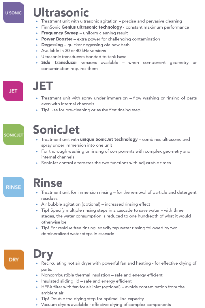 The FinnSonic Versa Genius systems consist of washing, rinsing and drying modules as well as the corresponding accessories.