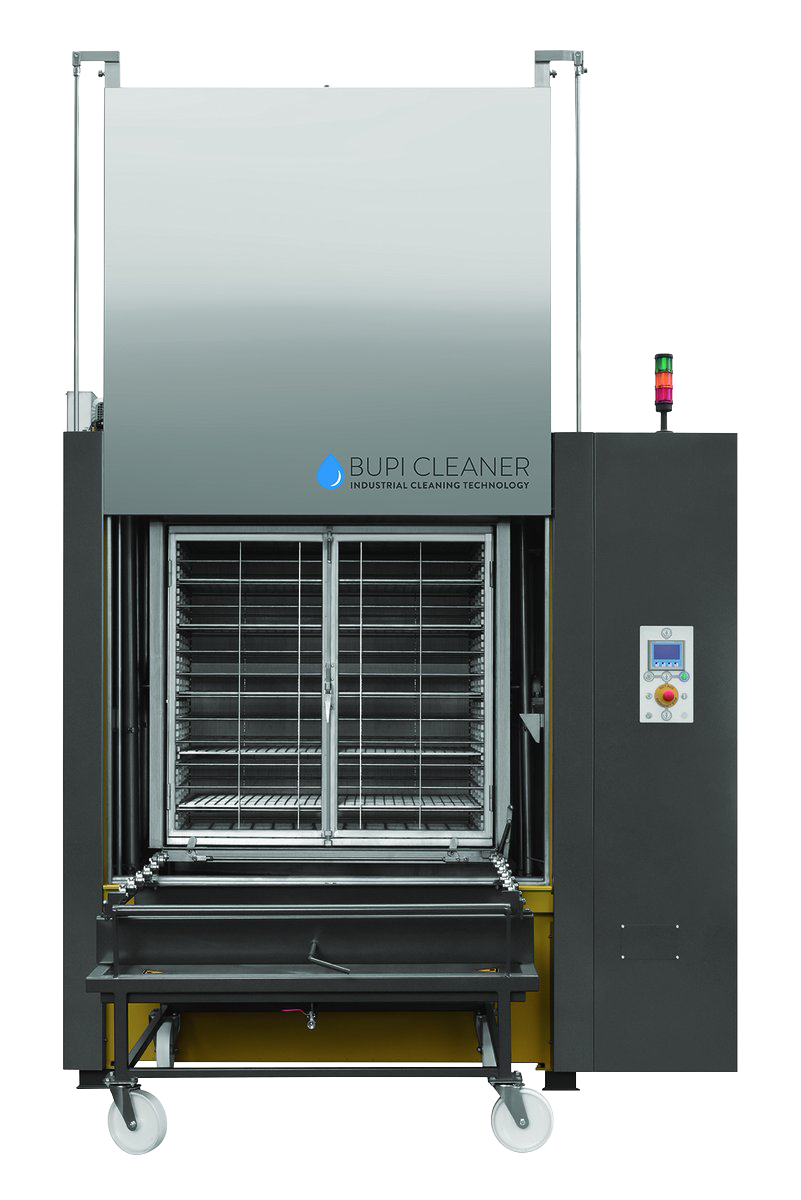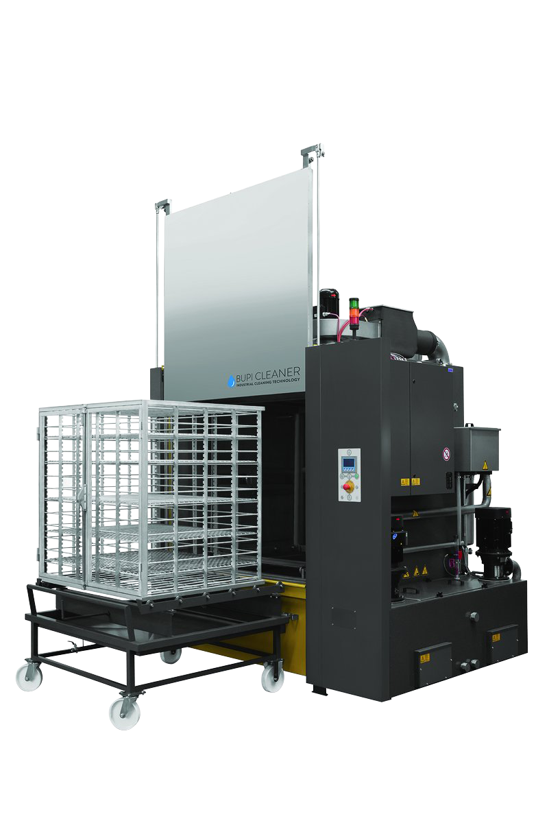 Die Reinigungsanlage BUPI CLEANER® POWERTEC KLT zeichnet sich durch ihre platzsparende, kompakte Bauweise und die einfache Bedienung aus. Die Kleinladungsträger (KLT) werden einfach von Hand in den großen Reinigungskorb eingeschoben.