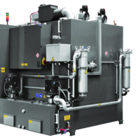 Zur hauptzeitparallelen Be- und Entladung eines Reinigungskorbes während des Reinigungsprozesses kann das Be- und Entladen der Anlage mit mehreren Zubringerwagen erfolgen. Dadurch wird die Kapazität der Anlage nahezu verdoppelt.